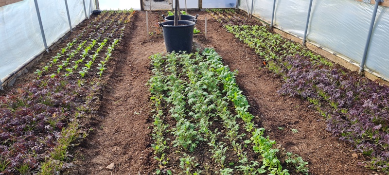 “The first crops we will be harvesting in March include Kale, Chard, Leeks, Perpetual Spinach and Salad Onions – to name a few! Over in the polytunnel we’ve had a flourish of Pak Choi, Lettuce Navara, Little Gem Lettuce, Mustard Leaf Red Frills, Mustard Leaf Green Frills, Mustard Leaf Red Dragon and some Coriander.”