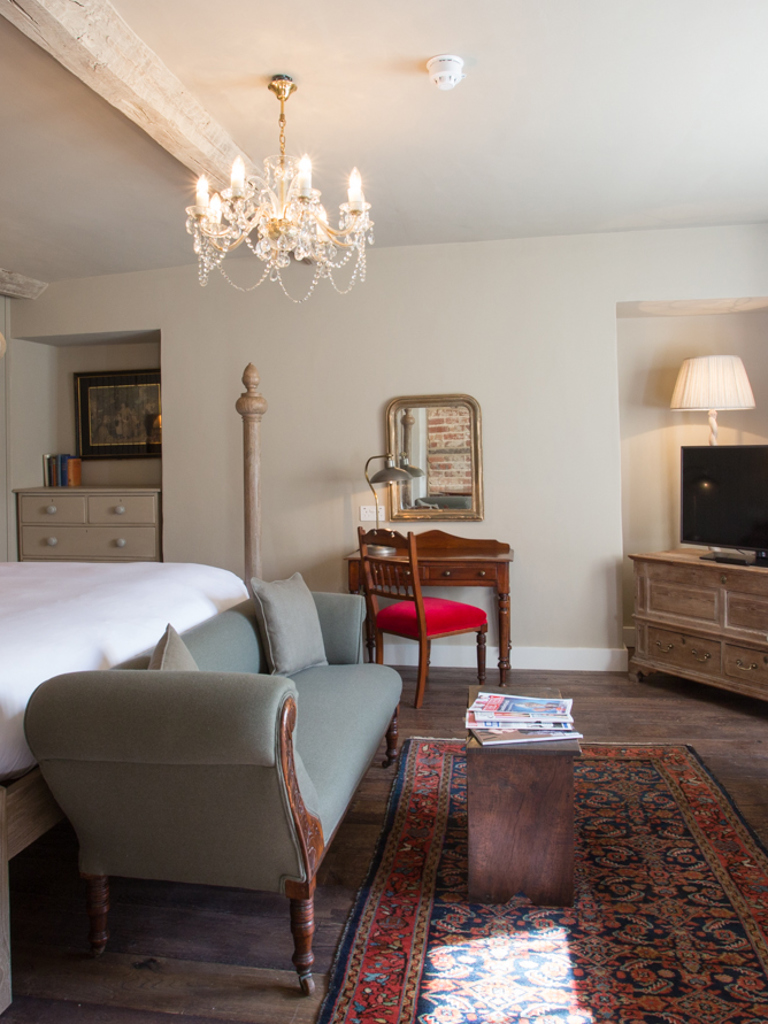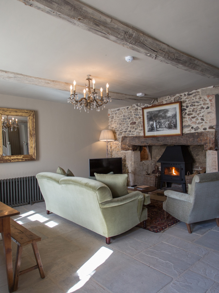This beautiful cottage is filled with character and has the largest bedrooms of all our lodges at THE PIG-at Combe. Inside, it has a warm sitting room with a cosy wood burner set in a large inglenook fireplace beside a galley kitchenette – perfect for gathering everyone together. The large master bedroom is downstairs and has a four-poster bed and freestanding roll top bath in the room as well as a shower in the en-suite. Upstairs, the second bedroom can be made into a twin or double and has its own separate shower en-suite. The cottage is ¾ mile away from the main house – a short, gentle walk, or we can collect you in the PIG Land Rover.
