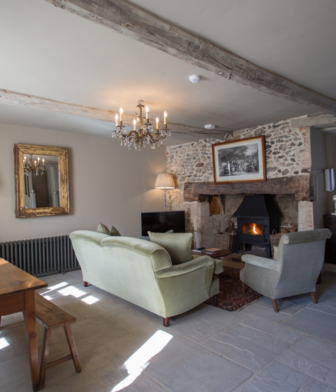 This beautiful cottage is filled with character and has the largest bedrooms of all our lodges at THE PIG-at Combe. Inside, it has a warm sitting room with a cosy wood burner set in a large inglenook fireplace beside a galley kitchenette – perfect for gathering everyone together. The large master bedroom is downstairs and has a four-poster bed and freestanding roll top bath in the room as well as a shower in the en-suite. Upstairs, the second bedroom can be made into a twin or double and has its own separate shower en-suite. The cottage is ¾ mile away from the main house – a short, gentle walk, or we can collect you in the PIG Land Rover.