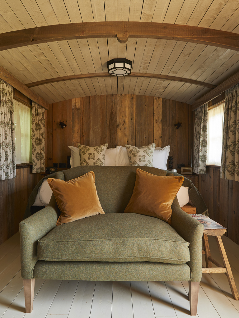 Close to nature in a private garden, just a stone’s throw from the main house, our five Stream Wagons are tucked beside the quietly flowing River Gitt with views out over the wildflower meadow. Stylishly designed with reclaimed timber and super cosy furnishings, our Stream Wagons hold a comfy double bed inside, a large en-suite bathroom, wood burning stove and a private outdoor terrace. The best part? You’ll find double-ended roll top baths and monsoon showers – inside and outside! The wagons are ¾ of a mile from the main house and our PIG Land Rover can pick you up and drop you back home when you’re ready to turn in.