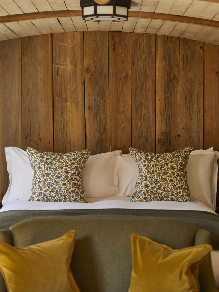 Close to nature in a private garden, just a stone’s throw from the main house, our five Stream Wagons are tucked beside the quietly flowing River Gitt with views out over the wildflower meadow. Stylishly designed with reclaimed timber and super cosy furnishings, our Stream Wagons hold a comfy double bed inside, a large en-suite bathroom, wood burning stove and a private outdoor terrace. The best part? You’ll find double-ended roll top baths and monsoon showers – inside and outside! The wagons are ¾ of a mile from the main house and our PIG Land Rover can pick you up and drop you back home when you’re ready to turn in.